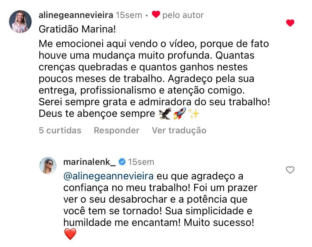 Acompanhamento individual no Instagram fechado @timemarinalenk: